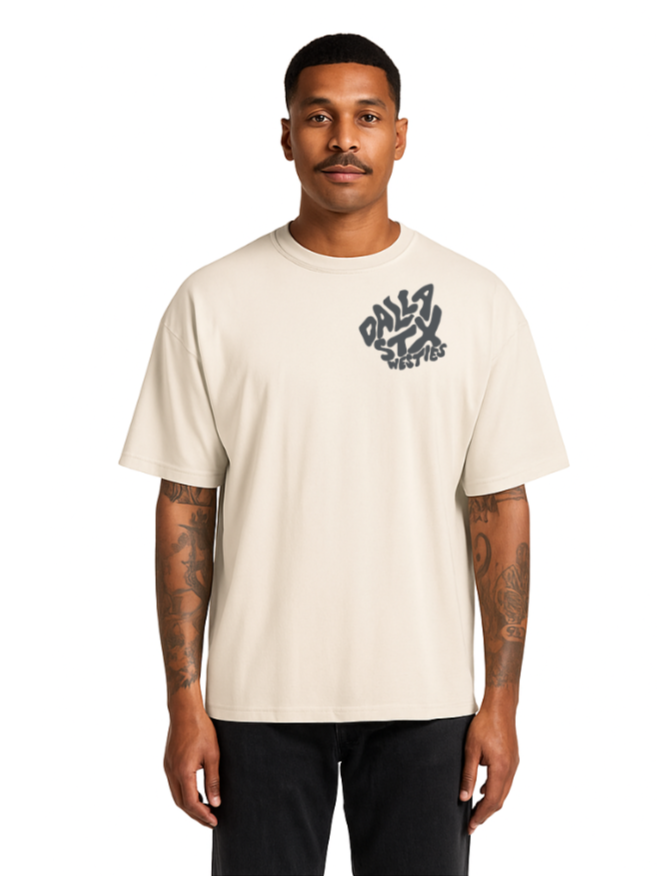 A heavyweight (6.5 oz) 100% combed cotton OVERSIZED tee—cut wider, dropped lower, built bolder. This oversized tee carries a boxier silhouette with a slightly shorter length and dropped shoulders than the District Drifter (Classic Fit) for a more intentional stylized, streetwear silhouette.