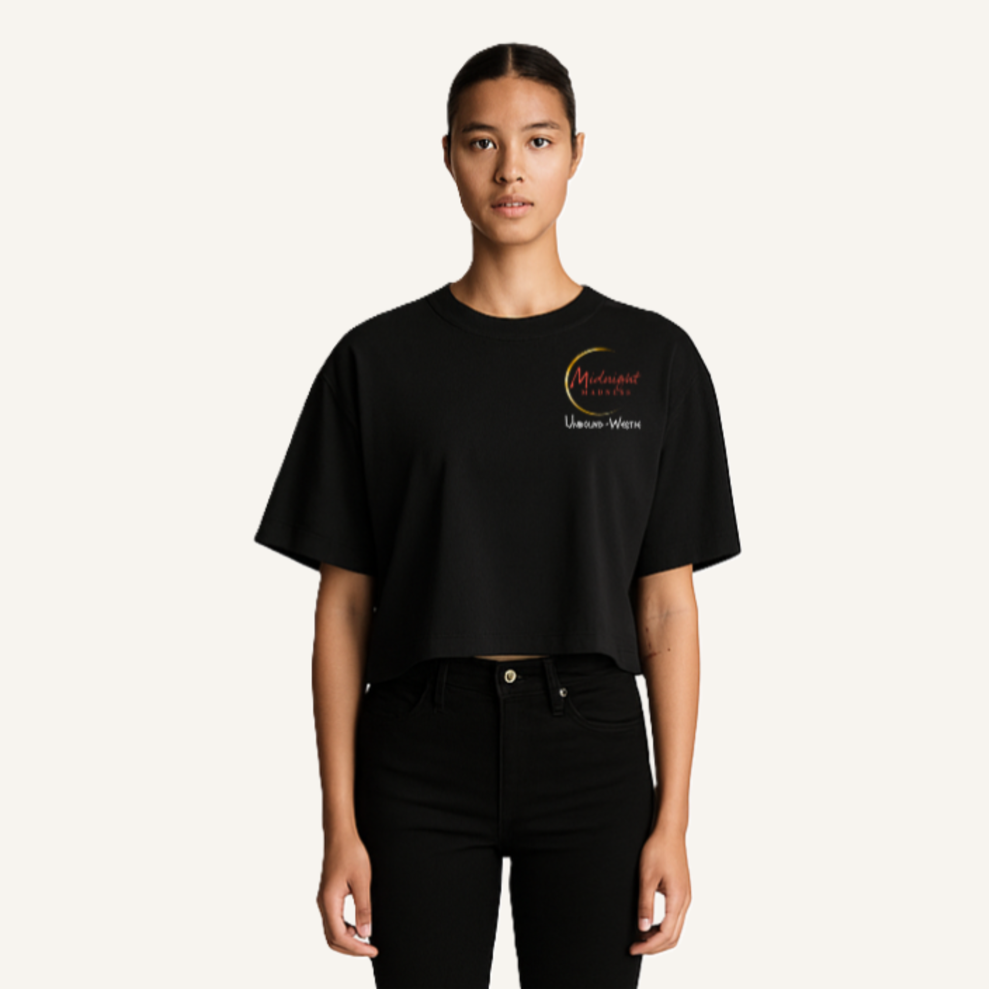 This midweight crop tee is crafted from 100% combed cotton. With a soft yet substantial feel, this crop blends structured drape with effortless edge. Its boxy fit, dropped shoulders, elongated sleeves, and cropped length offer a refined streetwear aesthetic, made for movement and style.
